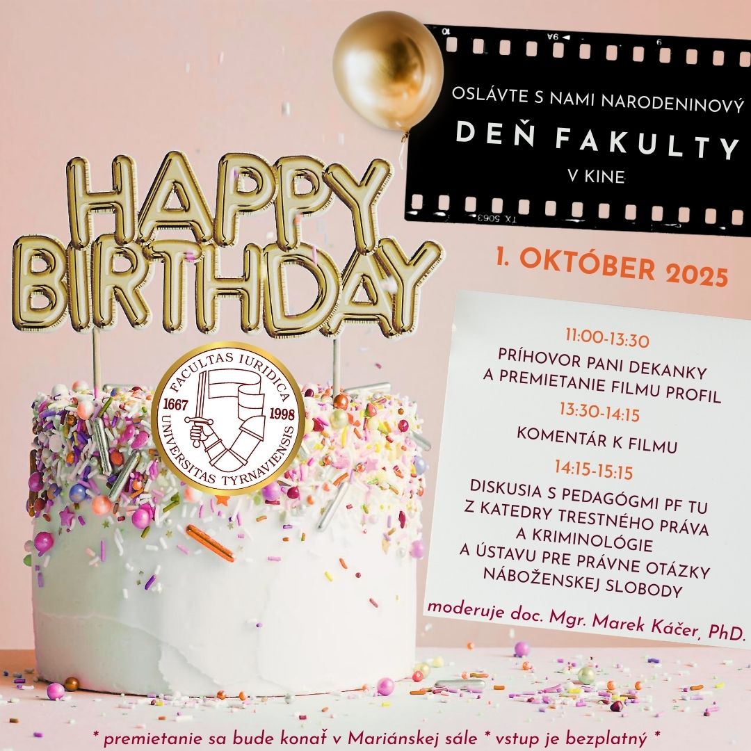 pri príležitosti Dňa fakulty, ktorý sa uskutoční 1. októbra 2025 od 11:00 do 15:30 v Mariánskej sále na Františkánskej ulici, Vás pozývame na bezplatné premietanie filmu Profil, ako aj na prednášku a diskusiu o filme.
