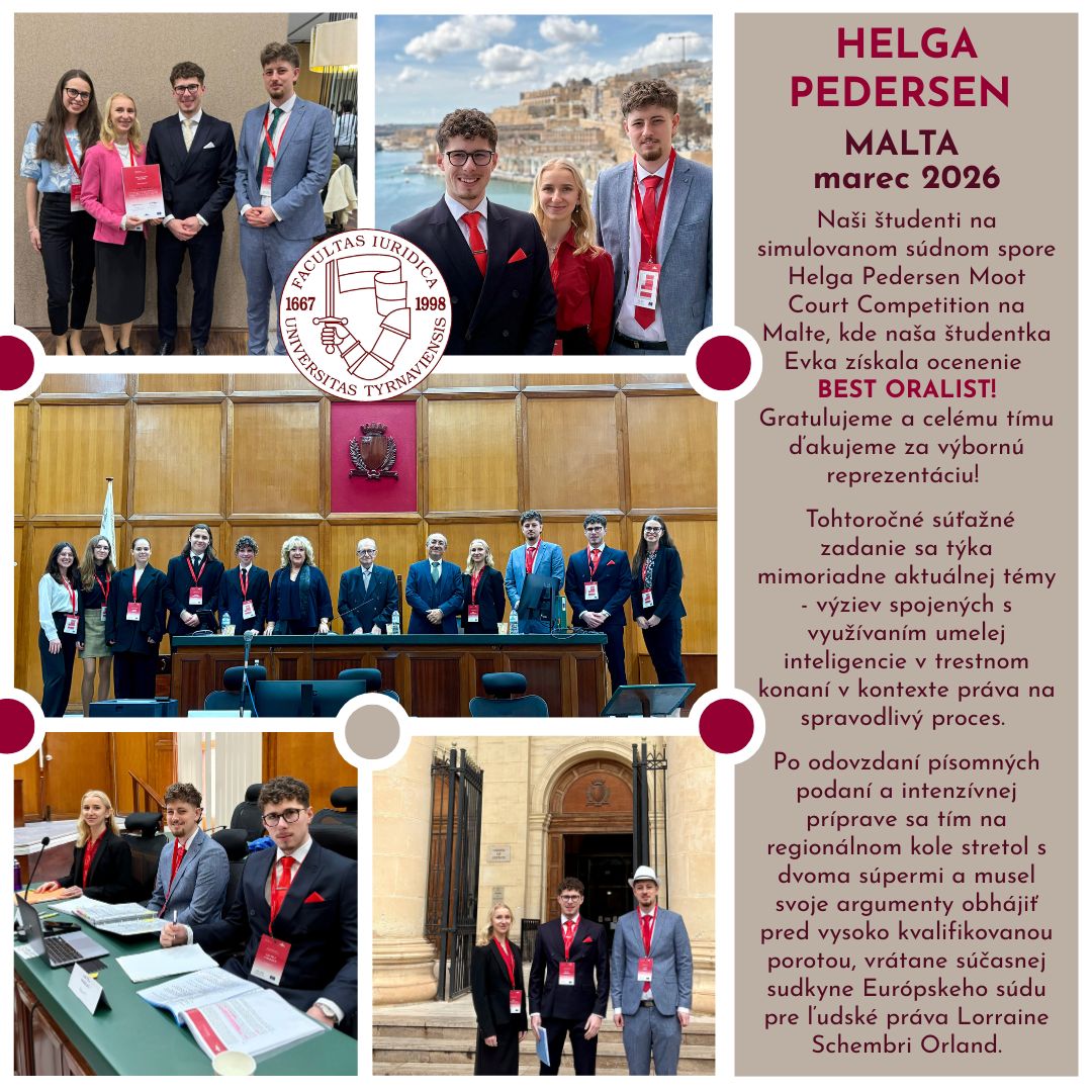 27. 4. 2023 sa na Právnickej fakulte Univerzity Karlovej uskutočnilo česko-slovenské kolo súťaže Rímskoprávny moot court. Tím Právnickej fakulty Trnavskej univerzity v Trnave v zložení: Denisa Oravcová, Adam Konušik a Juraj Letovanec, získal vynikajúce 2. MIESTO.