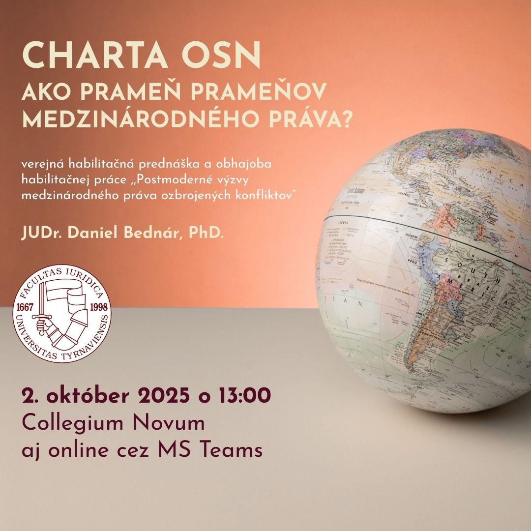 Dátum, čas a miesto konania: 2. 10. 2025 o 13.00 hod., TU Trnava, Právnická fakulta, Kollárova 10, Trnava, zasadacia miestnosť „Collegium novum“, 2. poschodie.