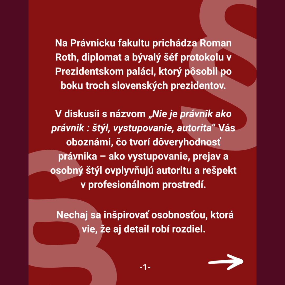 pozývame Vás na podujatie v spolupráci Naša Právnická a PF TU s významným prednášajúcim: