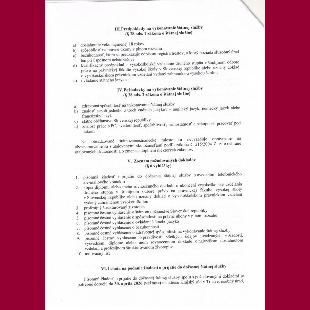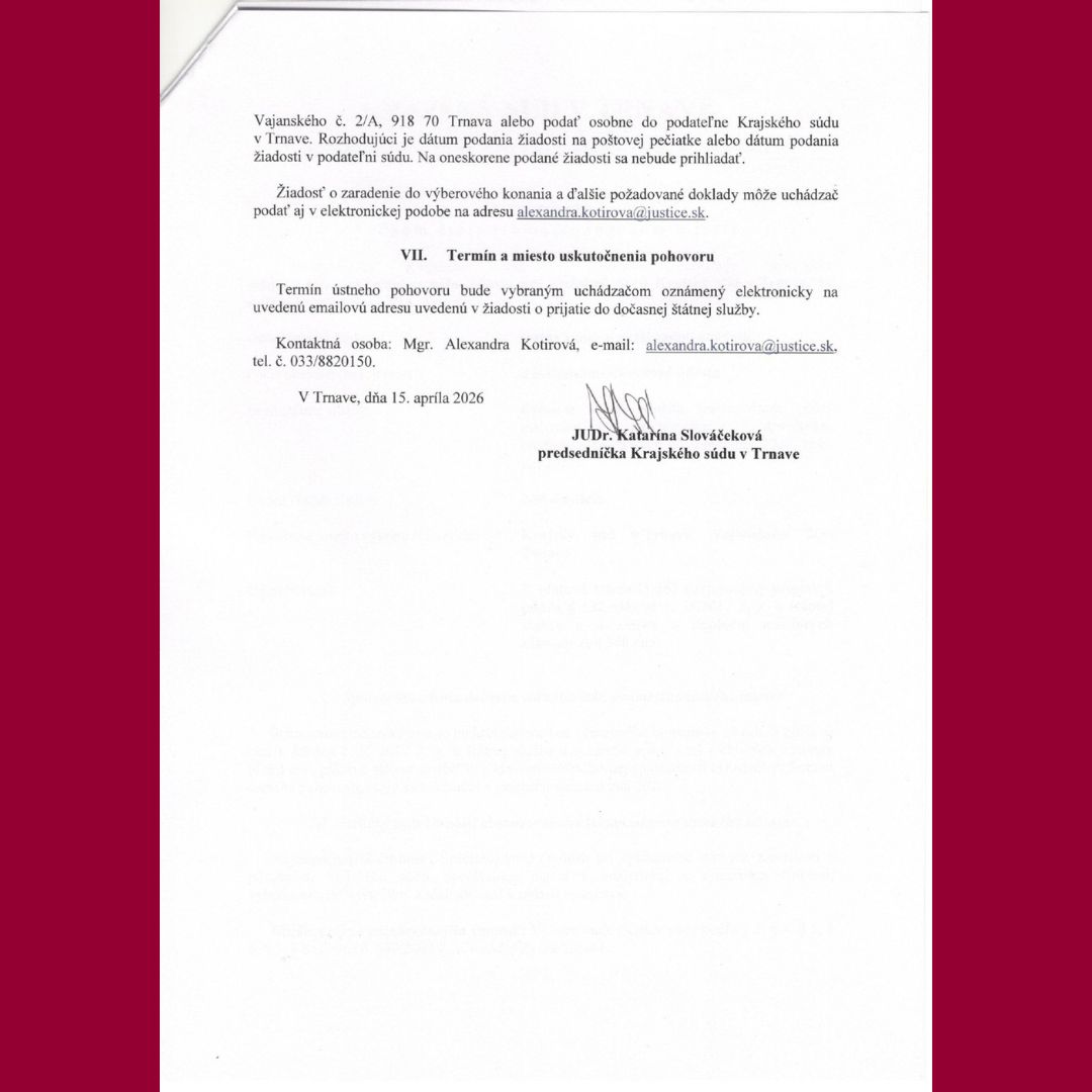 Informácie pre uchádzačov
